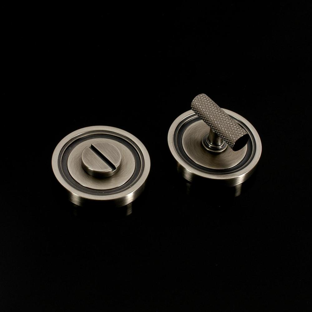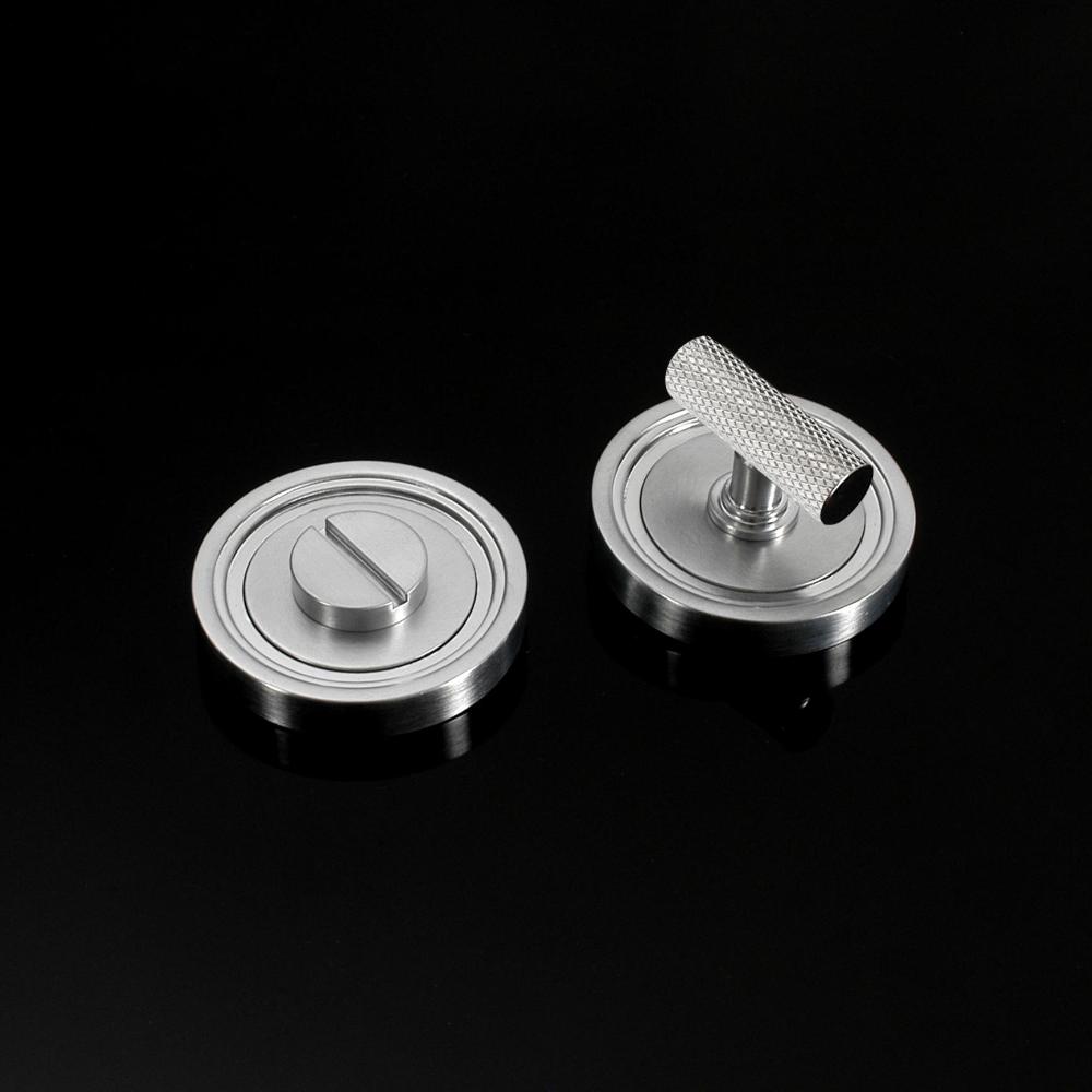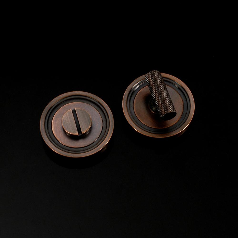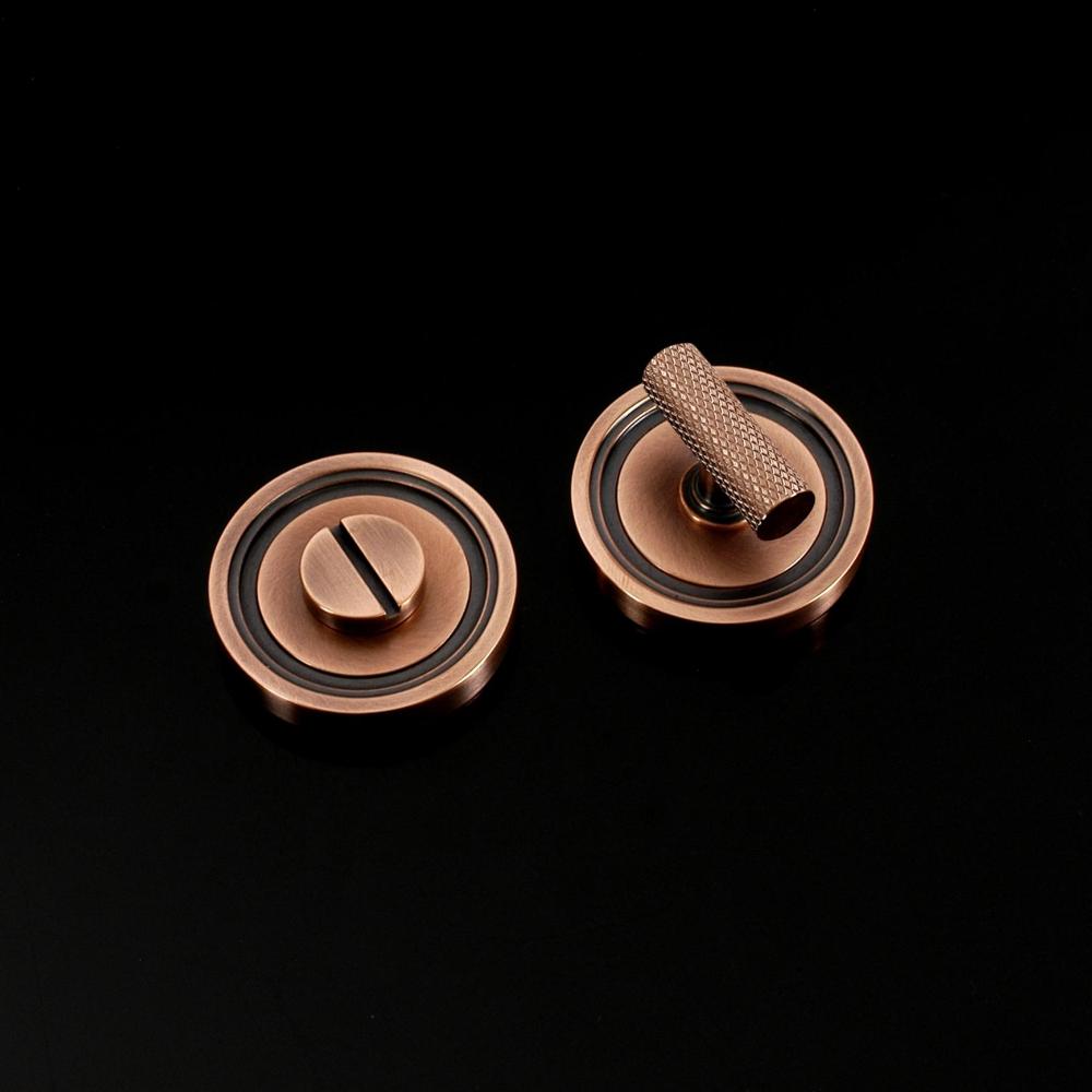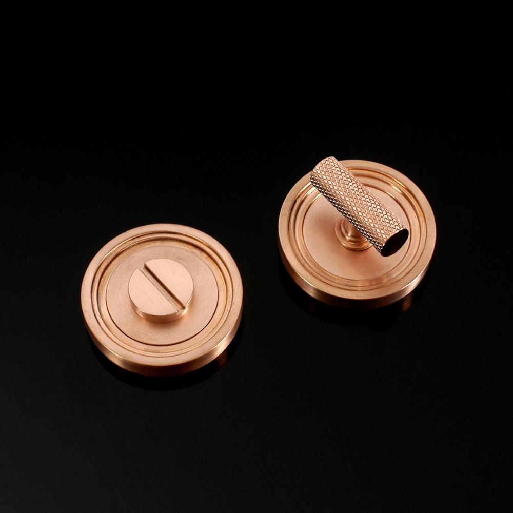 Corby Privacy Lock in Contemporary style. This product is available in all of our finishes and is sold as Sets unless otherwise stated. This product is Concealed Fix and supplied with 6 x No. 2 fixings in a matching finish. Turn options available for this product are Round Bar, Barrel, Half-Moon, Stepped Bar, Hexagonal Bar or Knurled Bar and it is a Coin release system. The image shows the exact product in selected popular finishes (Brass, Chrome, Nickel & Copper).