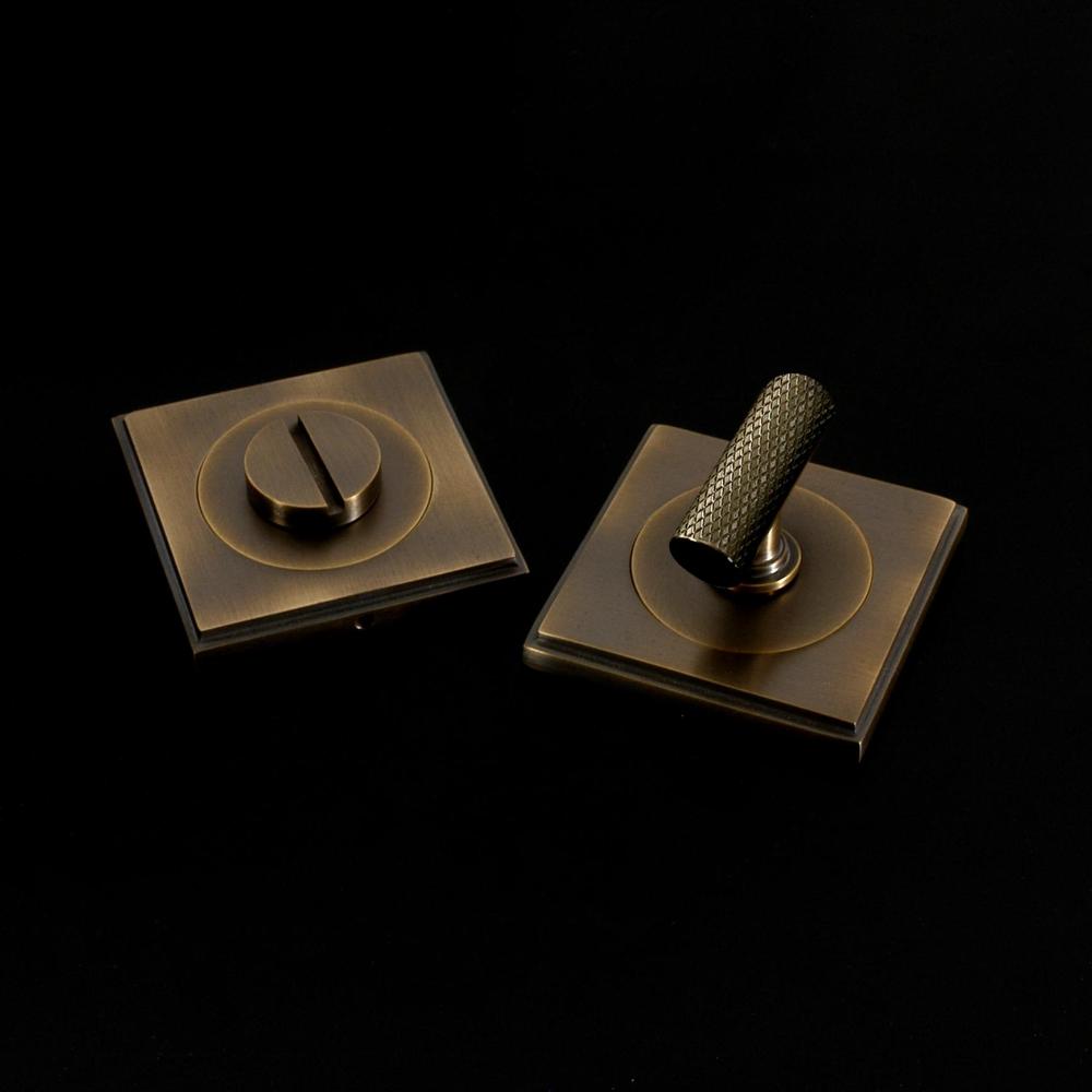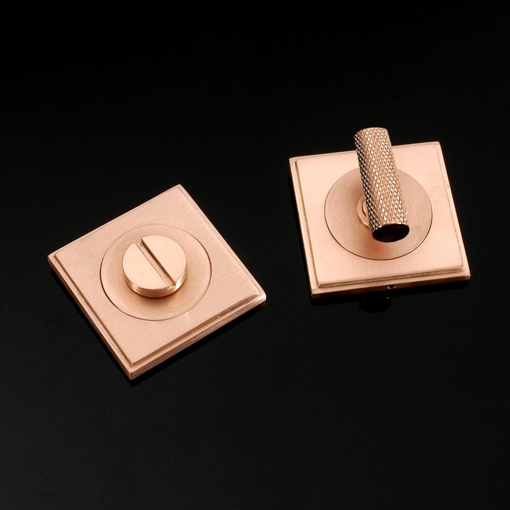 Eden Privacy Lock in Contemporary style. This product is available in all of our finishes and is sold as Sets unless otherwise stated. This product is Concealed Fix and supplied with 6 x No. 2 fixings in a matching finish. Turn options available for this product are Round Bar, Barrel, Half-Moon, Stepped Bar, Hexagonal Bar or Knurled Bar and it is a Coin release system. The image shows the exact product in selected popular finishes (Brass, Chrome, Nickel & Copper).